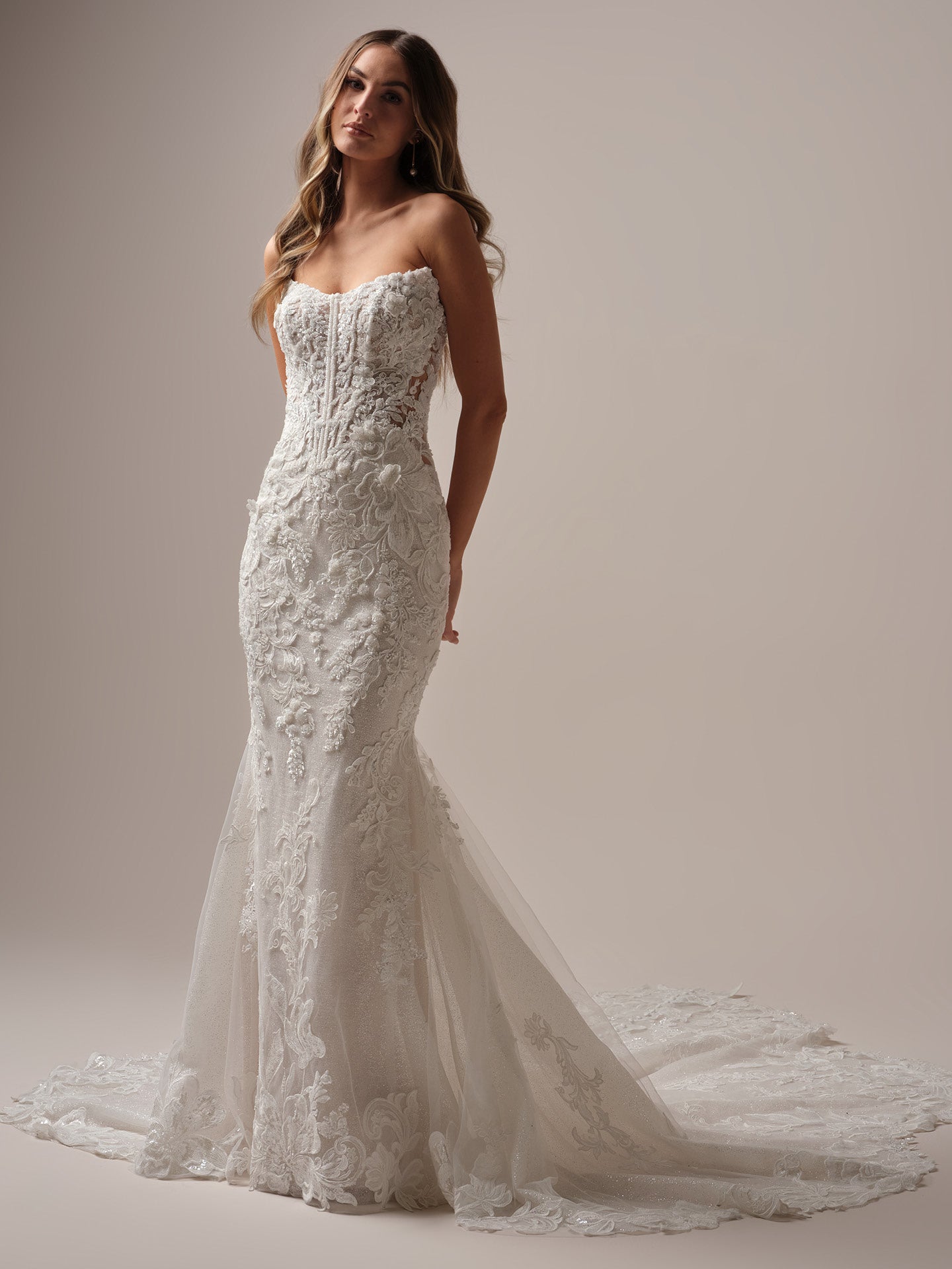 Sottero Midgley gowns range from $2,500 to $4,000. These couture-inspired designs blend...